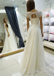 الدانتيل الشيفون ألف خط باتو ثقب المفتاح طول فستان الزفاف