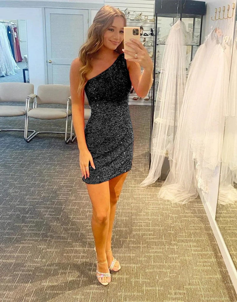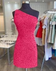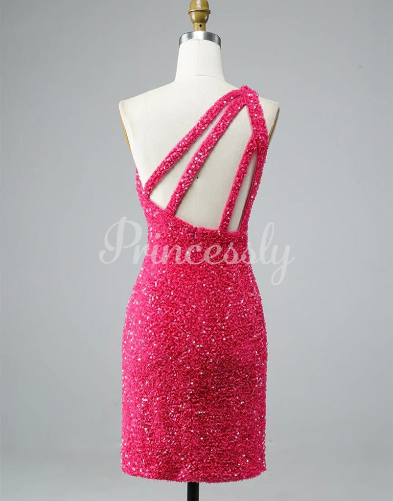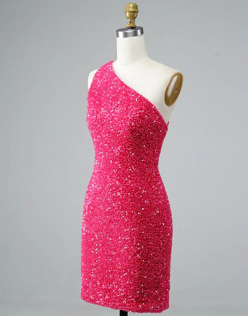 بريق الترتر الوردي الساخن كتف واحد العودة للوطن فستان الزفاف حزب