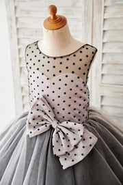 أسود منقطة تول مشد الظهر الكرة بثوب كب كيك الزفاف زهرة فتاة اللباس