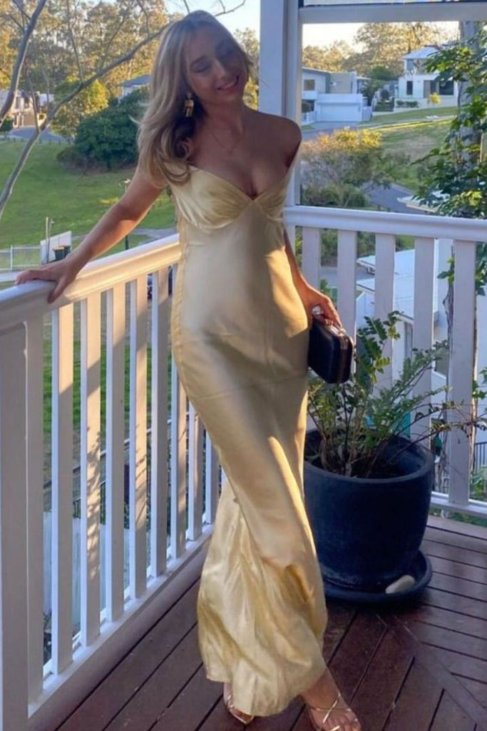 Sheath Off-Shoulder V-Neck Satin Long Formal Party Prom Dress