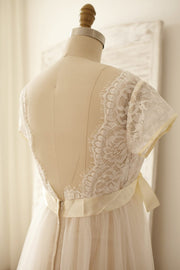 Empire Waistline Maternity Cap Sleeves Lace Tulle Wedding Dress