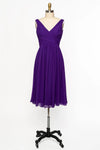 V Neck Sleeveless Crisscross Short Purple Chiffon Bridesmaid Dress
