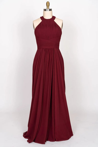 A-line High Halter Keyhole Burgundy Chiffon Long Bridesmaid dress