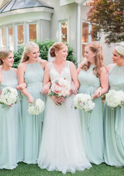 Sleeveless A-Line Halter Neck Floor-Length Chiffon Wedding Party Bridesmaid Dress