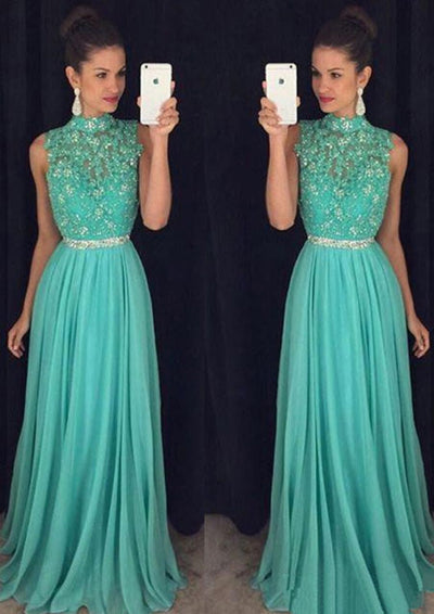 Sleeveless High Neck Floor Length A-line Mint Chiffon Formal Dress