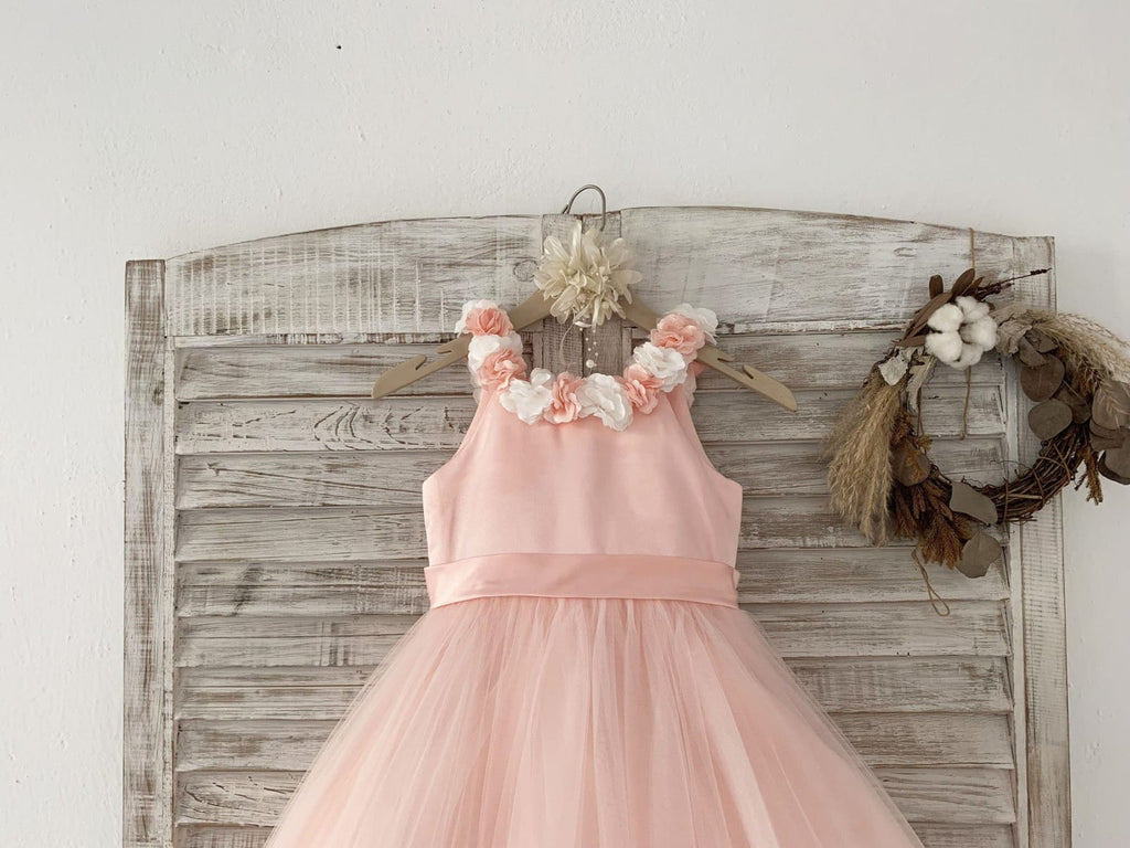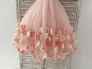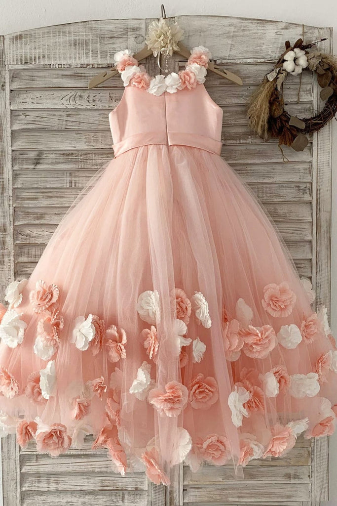 Ball Gown Blush 3D Flowers Tulle Wedding Flower Girl Dress Kids Party Dress