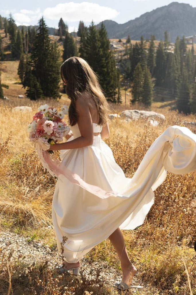 - Flattering A-line silhouette creates a timeless and graceful look;