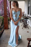 Spaghetti Straps V-Neck Beads Sleeveless Long Prom Dress, Slit