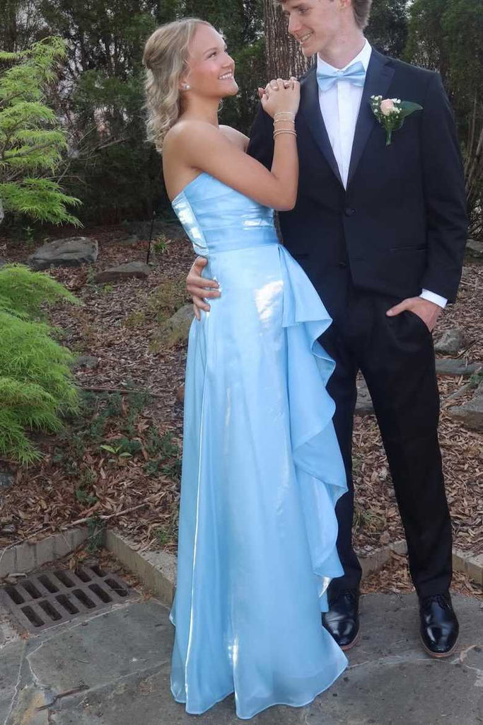 Blue Strapless A-Line Ruffles Empire-Waist Sleeveless Prom Dress
