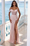 Pink Strapless Pleats Sequins V-Neck Long Sweep Prom Dress, Slit