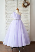 Champagner-Spitze-Tüll-Schlüsselloch-Rücken-Blumenmädchen-Hochzeitskleid