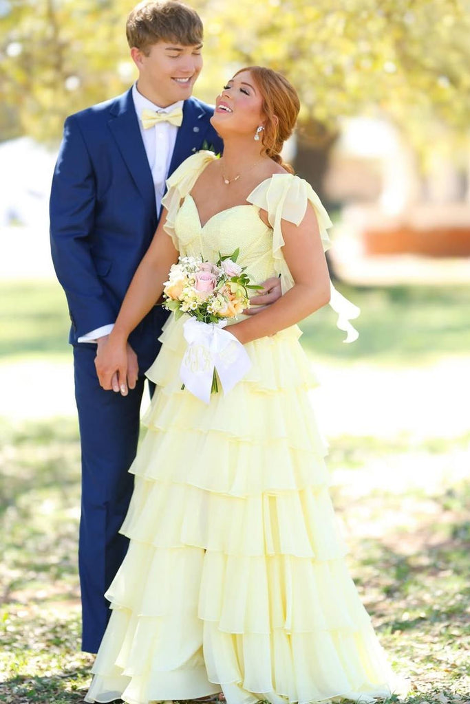 - Radiate confidence in this vibrant yellow formal gown designed to turn heads;
