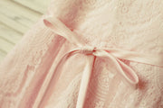 Blush Pink Lace V Back Vestido de niña de las flores, cinturón