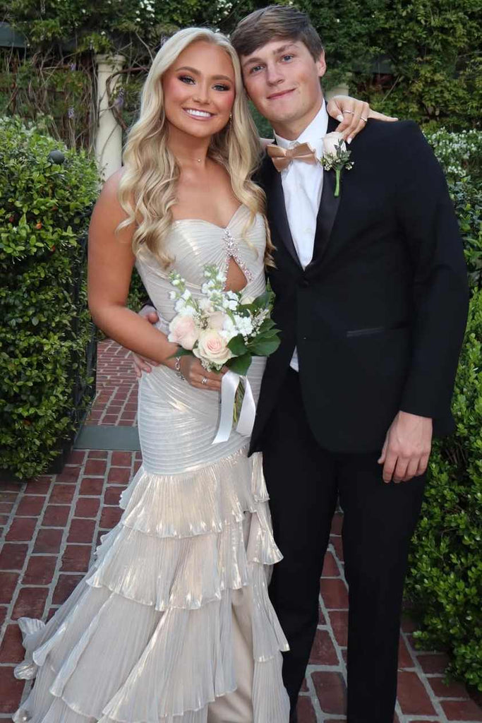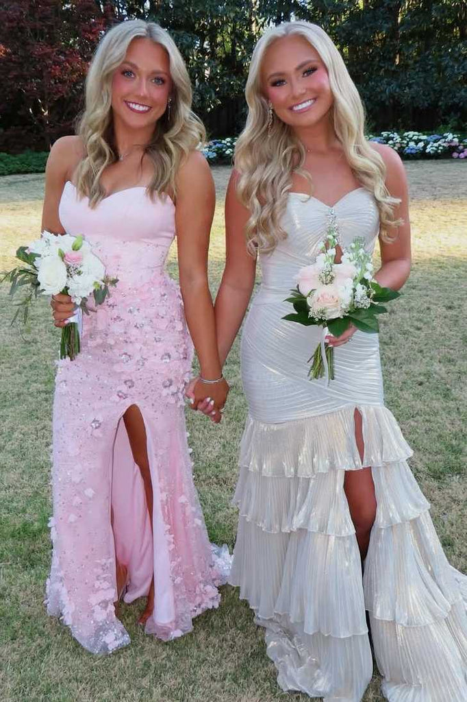 Strapless Sweetheart Metallic Cut-out Mermaid Ruffles Prom Dress, Slit