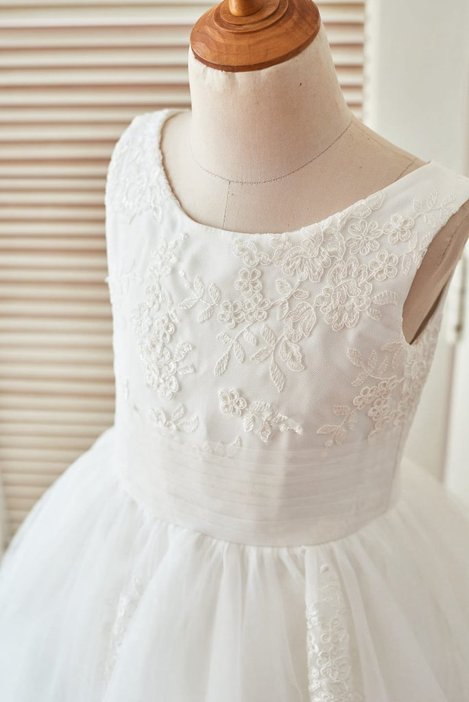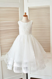 Cupcake Ivoire Dentelle Tulle Mariage Flower Girl Dress, Crin de Cheval