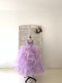 Abito da spettacolo in tulle con pizzo ricamato, maniche ad aletta, buco della serratura, abito da ragazza di fiori da sposa