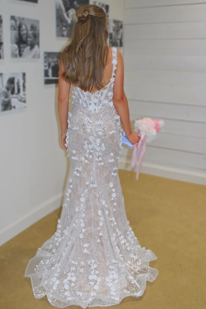 - Fitted bodice transitions seamlessly into a dramatic mermaid hemline;