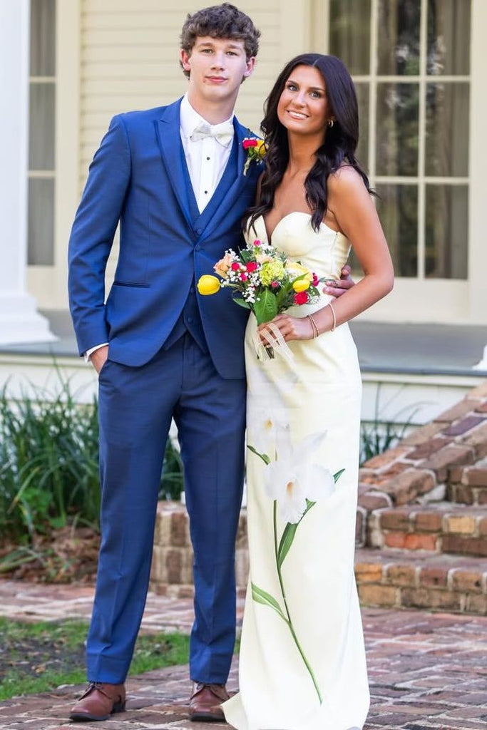 Yellow Strapless Sweetheart Print Sleeveless Sheath Long Prom Dress