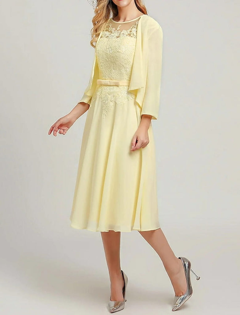 Two Piece A-line Scoop Neck Midi Chiffon Sleeveless Mother of Bride Dress, Wrap