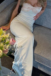 Sheath Strapless Lace Bow-knot Satin Party Formal Prom Dress