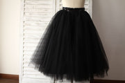 1. A saia listada é feita de tule preto com tecido de cetim combinando;