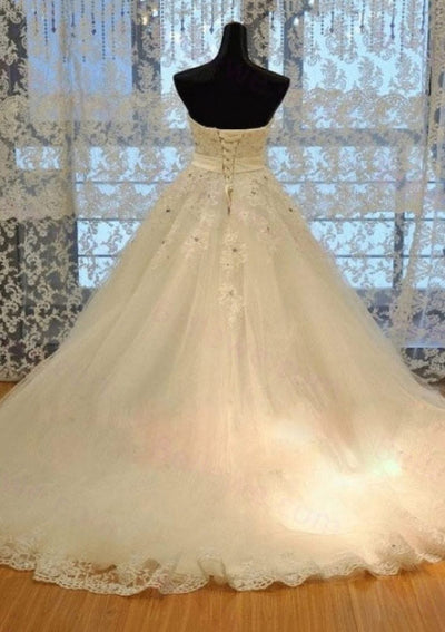 Vestido de Noiva Princesa Sweetheart Capela Rendas Tule Sem Alças