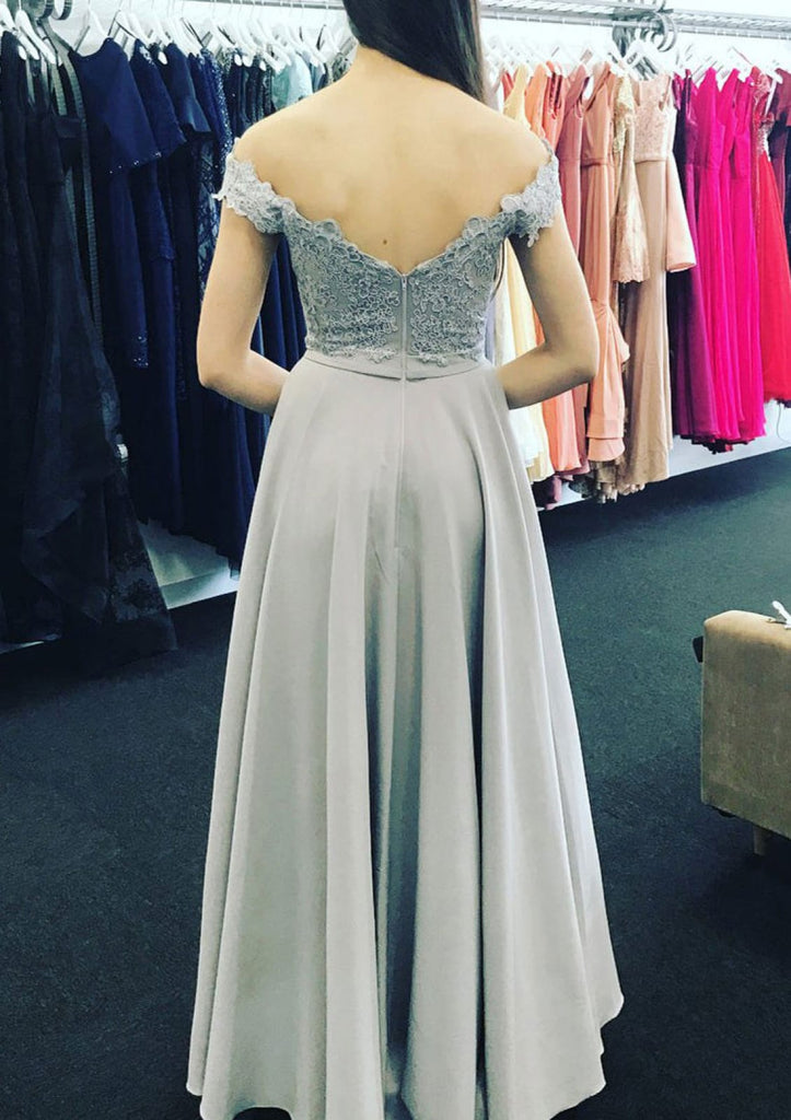 Шифон Трапеция/Принцесса с открытыми плечами Длинное вечернее платье для выпускного вечера, Кружева