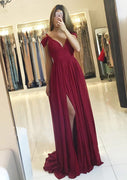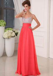 Формальное шифоновое платье для выпускного вечера с V-образным вырезом и трапецией, длинное вечернее платье, расшитое бисером