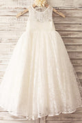 Свадебное платье из тюля цвета шампанского с короткими рукавами и кружевом цвета слоновой кости для девочек-цветочниц