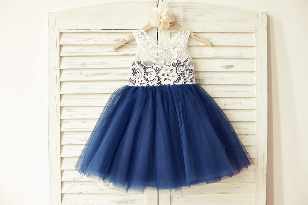 - Это платье выполнено снаружи из кружева цвета слоновой кости с тюлевой юбкой принцессы;