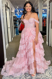 Платье на выпускной с корсетом, рюшами, многоярусным дизайном, украшенное пайетками и из тюля, длиной до пола, с разрезом